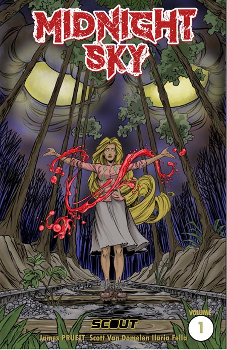 What would you do if you discovered your son wasn’t really your son? He may look like him, act like him, but deep down in your soul, you just know…that he’s been replaced. Then your worst fears are realized when the light hits his face just right and you accidentally see his true appearance for yourself. But he isn’t the only one you discover…your neighbor, your friend, even your husband. Do you scream? Do you run? Or do you fight back? And how can it be that your daughter is the best and, perhaps, last hope for mankind? Enter the dystopian world of the MIDNIGHT SKY where the sunlight has long since faded behind an impenetrable atmosphere leaving only the eternal darkness behind and your best hope for survival is to trust no one. Featuring a Bonus Cover Gallery of the complete collection of MIDNIGHT SKY covers featuring artwork by Scott Van Domelen, Vincent Locke, Ralf Singh and Lee Ferguson. Also included as a Special added feature is the prelude short story from 2019 FCBD Scout Presents, which was the debut appearance of MIDNIGHT SKY. Collecting the complete eight issues of Scout’s critically-acclaimed break-out hit! MIDNIGHT SKY is Invasion of the Body Snatchers meets They Live.