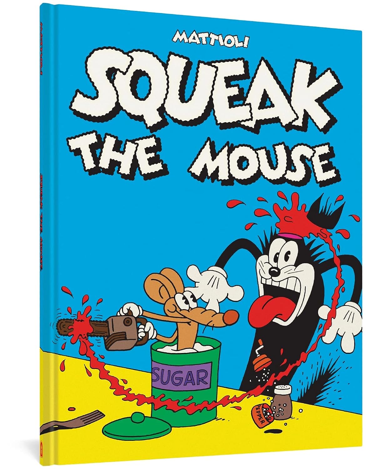 An outrageously cruel cat versus a wily mouse: a rivalry as old as time, popularized by the beloved Tom and Jerry cartoons of the '40s and '50s. In the hands of renowned Italian cartoonist Massimo Mattioli, however, this classic premise is infused with a whole new perverse and anarchic energy. Laying full-on slasher horror onto wacky cartoon violence, Mattioli's characters embark on a sadistic bloodthirsty rampage, leaving a trail of mangled corpses and pools of blood in their wake. And the comic's gratuitous bloodshed is not to be overshadowed by its crude humor and over-the-top sexcapades. In sum, a tour de force of unrelenting transgression, rendered in clean line art and dazzling pastel colors.Conceived in the early '80s, Squeak the Mouse was originally serialized in the Italian underground comics magazine Frigidaire to much acclaim. This silent comic series gained notoriety in the US when customs agents seized a shipment of Mattioli’s books; deemed pornographic, the work was subsequently made the subject of an obscenity trial (which was won by the publisher). Best known today as the precursor to the Itchy and Scratchy characters in The Simpsons, this cult classic comic series is finally coming back into print in a gorgeous and affordable hardcover.